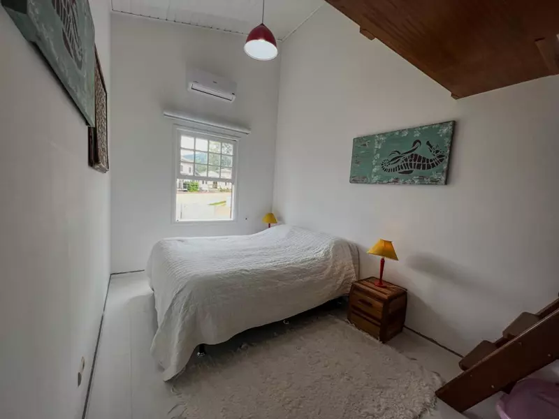 No andar superior possui uma suíte com closet, banheiro. dois quartos um deles com mezanino.