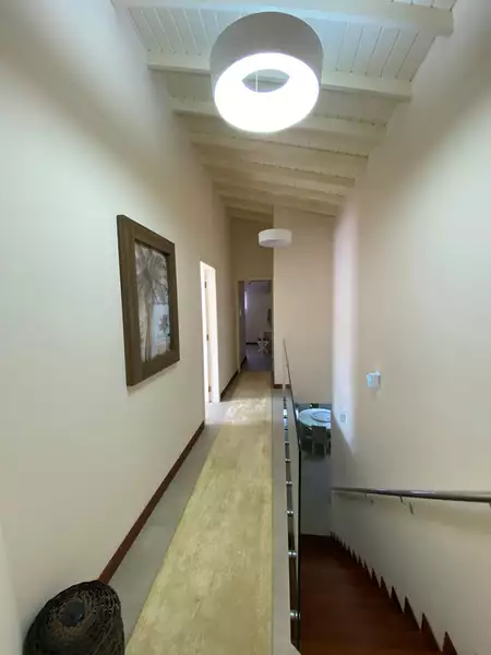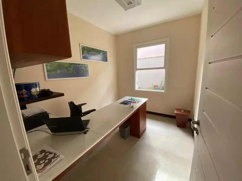 A casa possui três lindas suítes no andar superior e uma suítes com varada e jardim privativo no andar térreo. Salas de estar e TV, cozinha integrada com sala de jantar, escritório, lavabo, área de serviço completa e banheiros completo para atender a área externa.