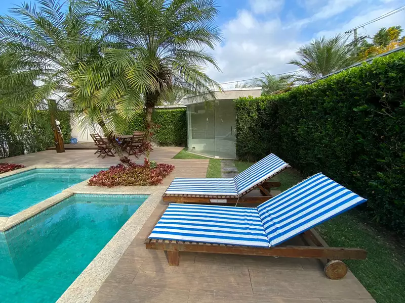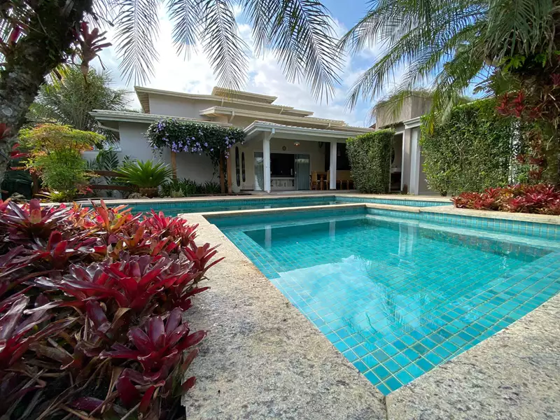 Construída com madeiras nobres, pedras selecionadas (cozinha em mármore Carrara), moveis planejados e amplas portas e janelas envidraçadas que dão visão para o exuberante jardim, área gourmet completa, piscina, sauna e lago.