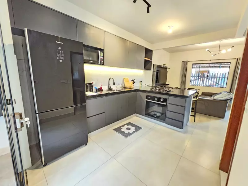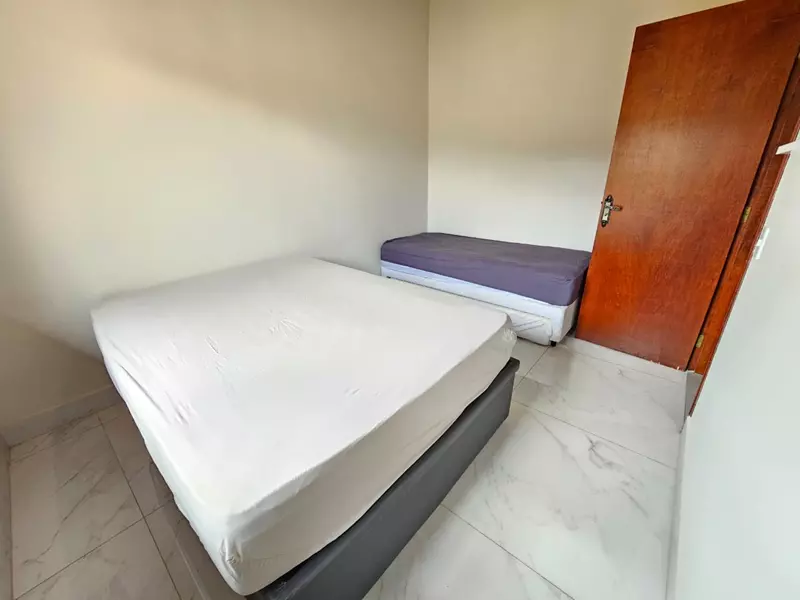 2 quartos sendo um deles possuindo closet com sacada, 2 banheiros sociais, sala, cozinha, área de serviço, pequeno quintal com garagem coberta, possuindo escritura.