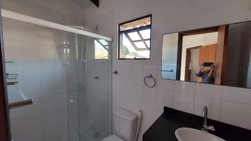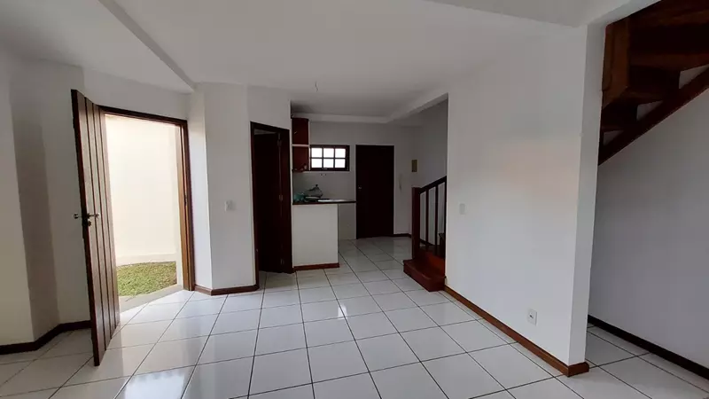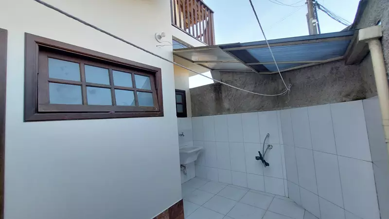 A casa possui no andar superior duas suites (uma com varanda) e no andar térreo, sala, cozinha, lavabo e area de serviço.