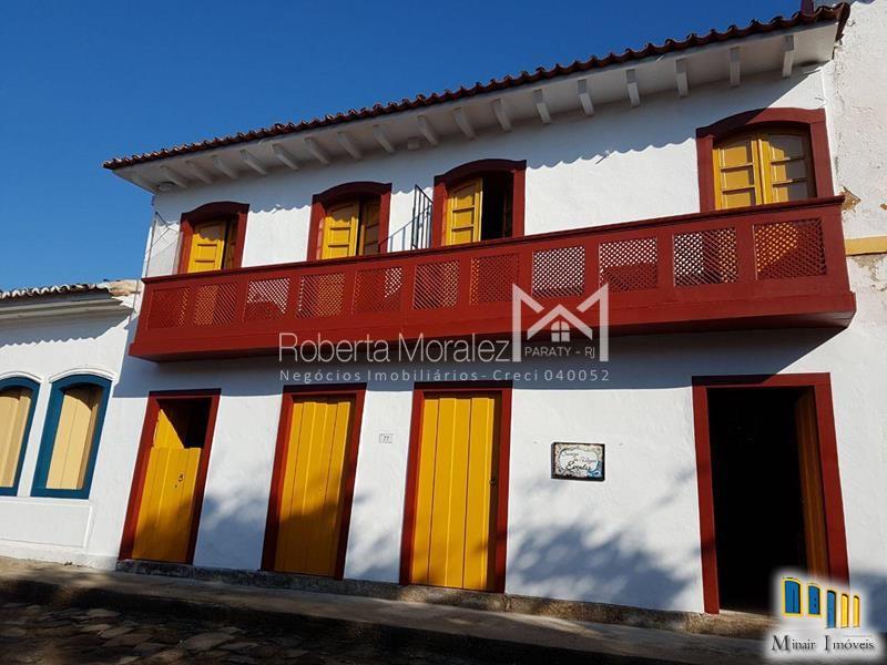 Sobrado a venda no Centro Histórico de Paraty com frente e fundos para duas ruas, possui 05 quartos sendo 02 suítes, 04 banheiros, com amplas salas podendo ser utilizadas para eventos, sala de jantar, Hall na entrada e jardim.